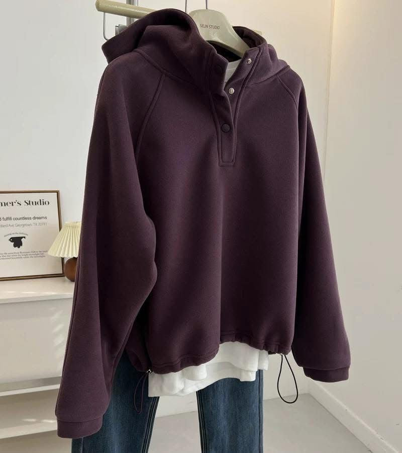Stay cozy and effortlessly chic with this soft fleece pullover. Designed with a high neck and snap-button details, it’s perfect for layering on chilly days. The adjustable drawstring hem adds a trendy touch while keeping you warm and comfortable. Ideal for casual outings or cozy nights in — simple, elegant, and so comfy!